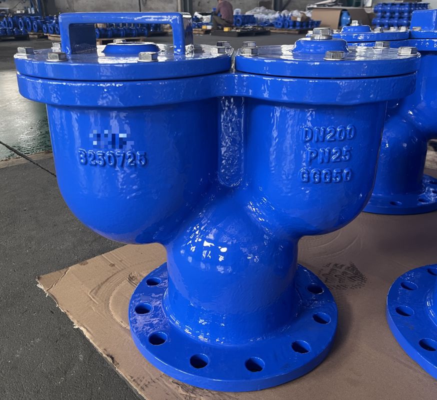 Das Doppelöffnungs-Entlüftungsventil hat eine Druckbewertung von PN10 und PN16, wodurch es für den Einsatz in Niederdruck- bis Mitteldruckanwendungen geeignet ist. Es ist aus hochwertigem Gusseisen und duktilem Eisen gefertigt, was es langlebig und beständig macht. Das Material des Ventils macht es zudem korrosions- und verschleißbeständig, wodurch sichergestellt wird, dass es rauen Umgebungen standhält.